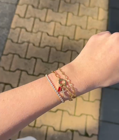 El Brazalete Birthstone con Dije de Cruz es un símbolo que te acompaña cada día, combinando una cadena moderna y delicada con el brillo profundo de tu piedra de nacimiento y una cruz que inspira fuerza, fe y propósito.